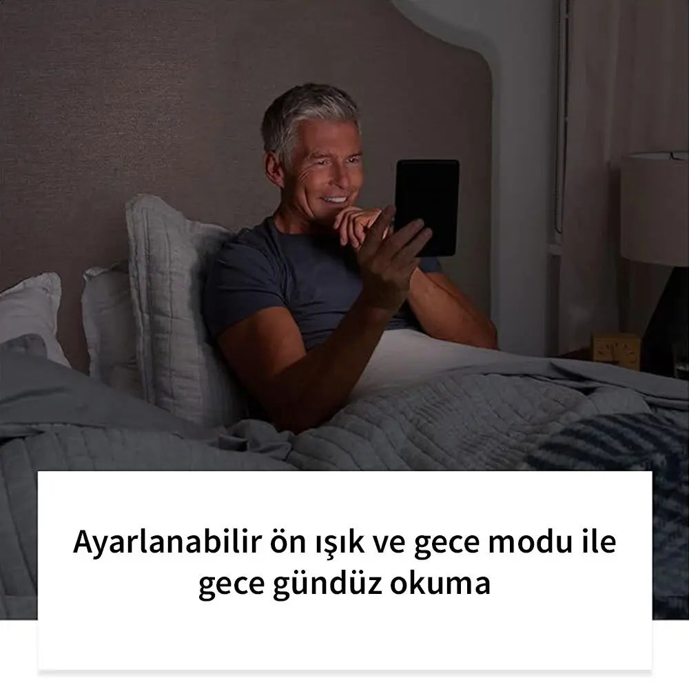 Kindle ile tanışın. Artık yerleşik ve ayarlanabilir ön ışığı sayesinde hem iç mekânda hem dışarıda ve günün daha fazla saatinde rahatça okuyabilirsiniz. Okuma için özel olarak tasarlanan Kindle, doğrudan güneş ışığında bile gerçek kâğıt hissi veren yansımasız bir dokunmatik ekrana sahiptir.