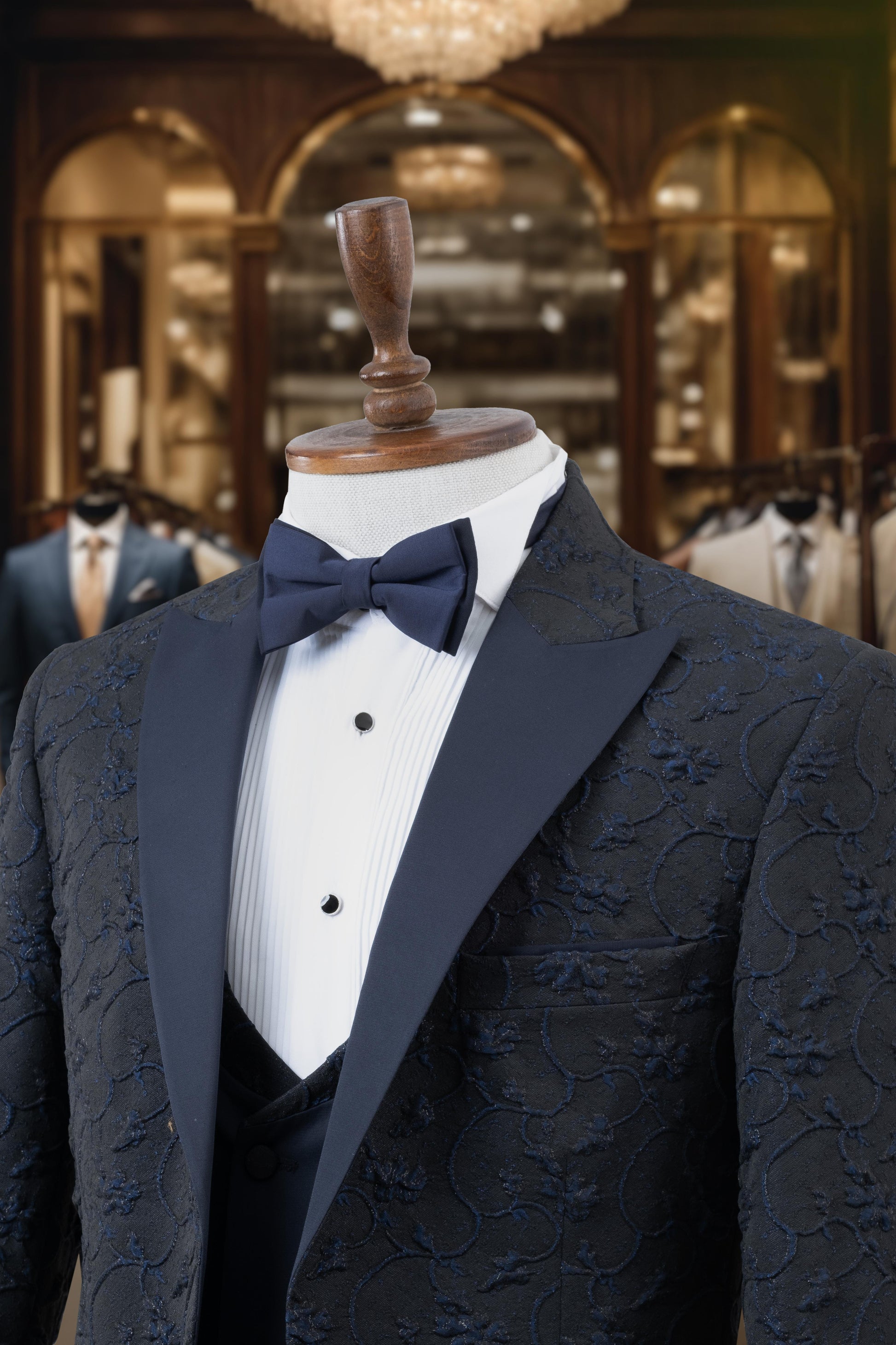 Groom's Suit Italian Cut Slim Fit Navy Blue Patterned SD4156