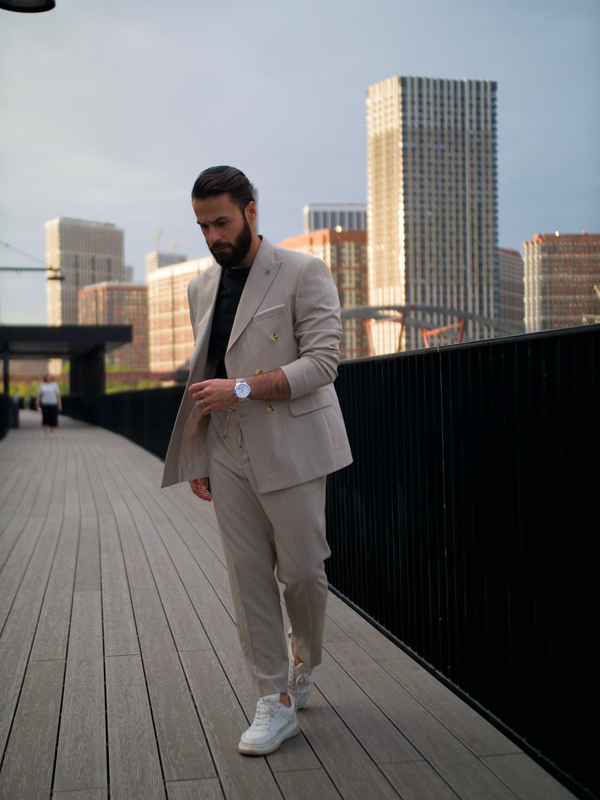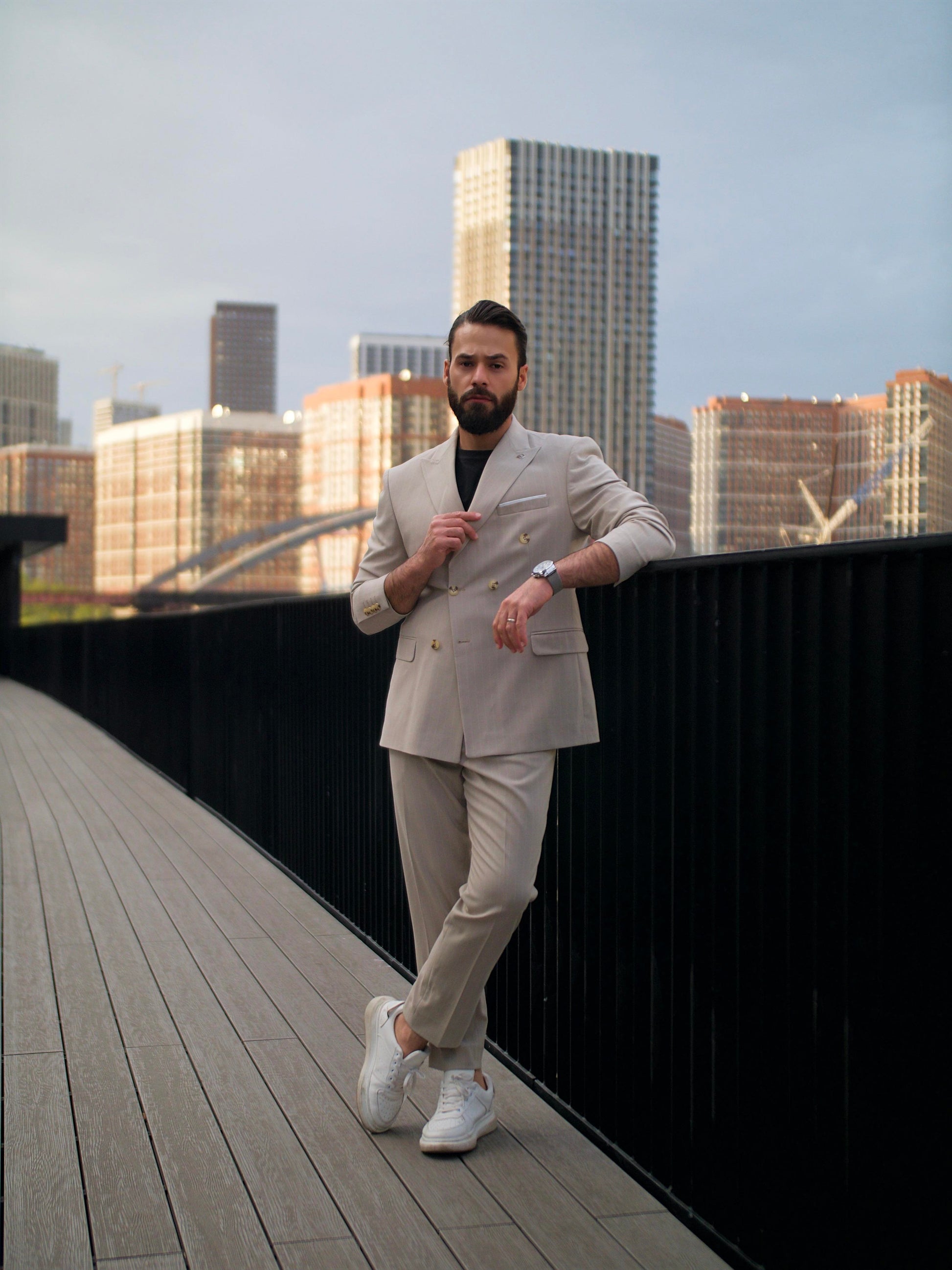 Suit Italian Cut Double Breasted SlimFit Cream Striped SD41034