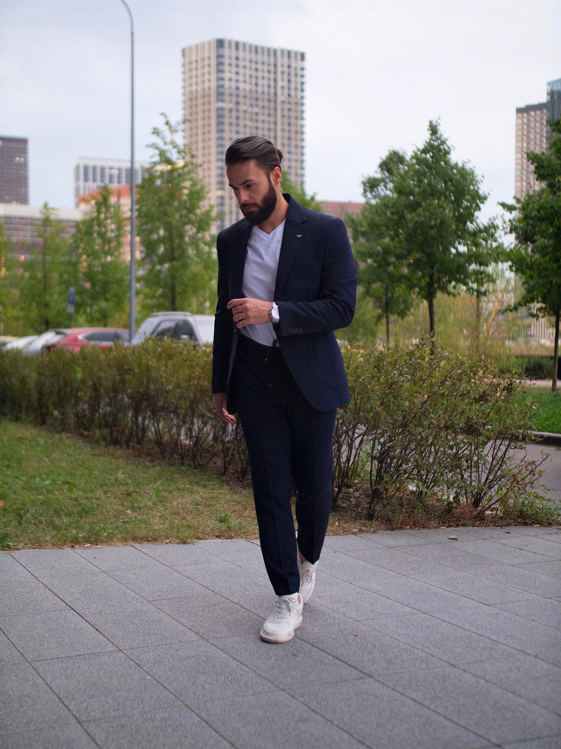 Suit Italian Cut Seersucker Drawstring SlimFit Navy Blue SD41036